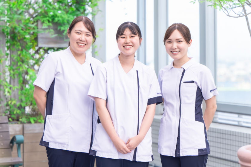 B 実際に患者さんのもとにいく時間がないときは、先輩方が業務を代わってくださるので、患者さんと向き合う時間が確保できていると感じています。