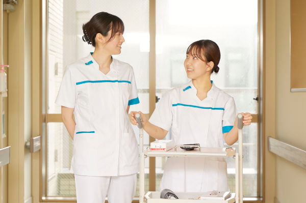 教育担当 2人とも困難や壁にぶつかりながらも、患者さんとのかかわりから学び、素晴らしい看護をしていますね。患者さんがどうなりたいか一緒に考える、まさに当院が大事にしている看護の実践です。これからも患者さんとともに歩み、看護職としての成長を期待しています。