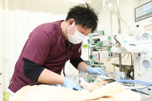 当院は、がん、心臓病、救命救急医療に特化した高度専門医療機関です。学生時代から小児の複雑な病態や集中治療に興味があったため、小児ICUを希望しました。最初の3カ月は小児心臓科病棟で経験を積み、その後、小児ICUへ異動しました。