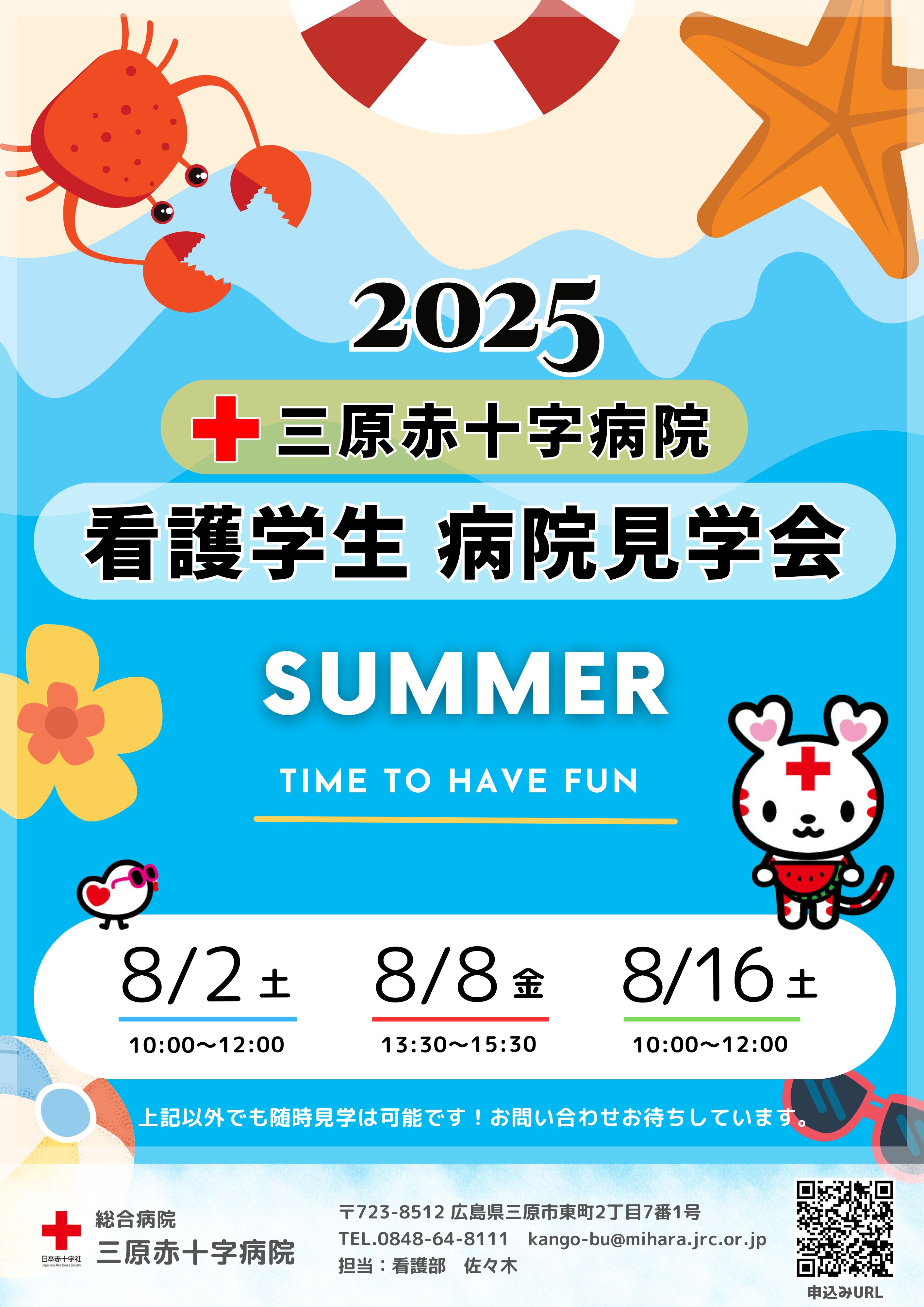 | ダウンロード資料 | 病院見学会では、先輩看護師からの体験談や、採用試験についてのご質問にもお答えします。皆様にお会いできますことを楽しみにしています。 | ||||
