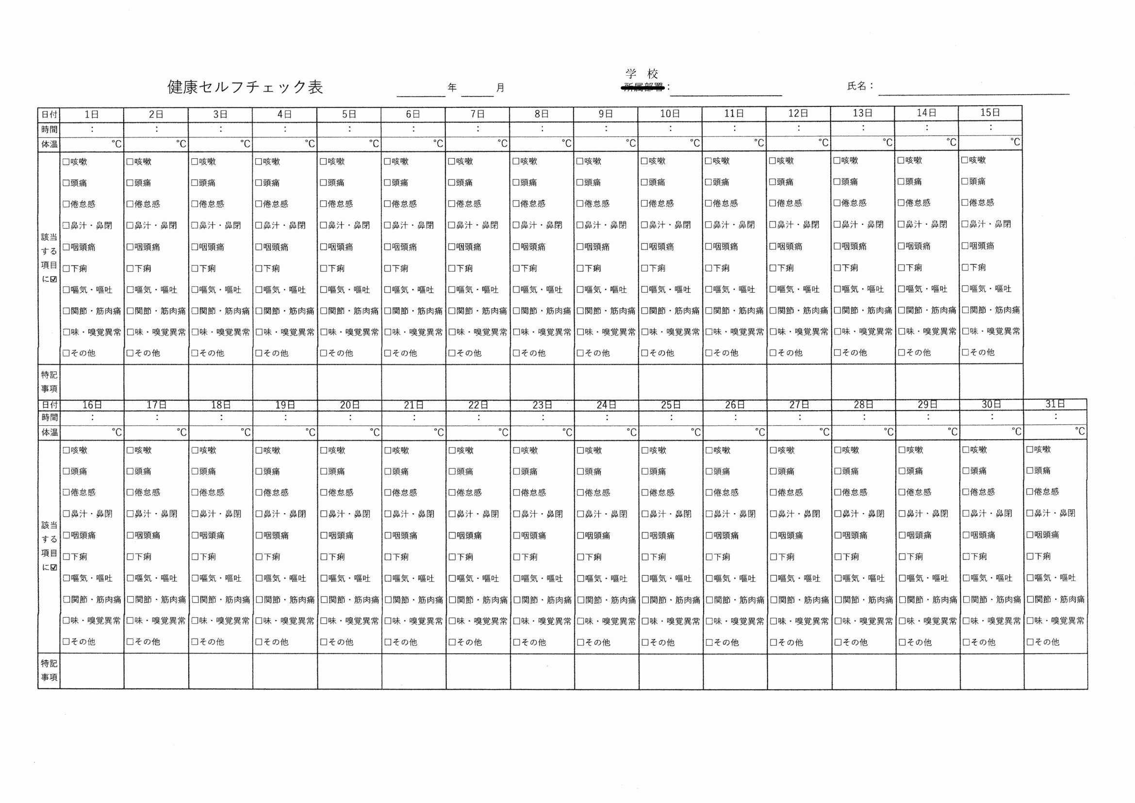 | ダウンロード資料 | 実施日の14日前より記入し当日にお持ちください。 | ||||