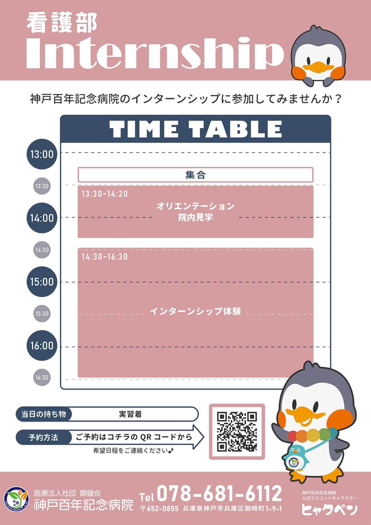 | 当日の持ち物 | ■実習で使用しているユニフォーム・ナースシューズ ■名札 ■筆記用具 |